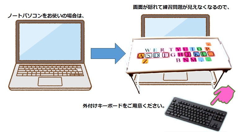 ノートパソコンでは、この「養成ギプス」があると、画面が見えなくなることがほとんどです。キーボードにタオルを被せるか、外付けキーボードを購入してください。